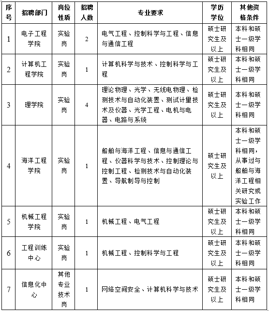 根据学校工作需要,按照公开、公平、公正的原则,江苏海洋大学面向全社会公开招聘非事业编制实验员及专业技术人员,现将有关事项公告如下: