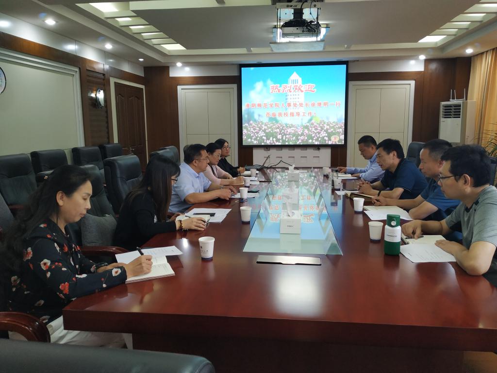9月29日下午,淮阴师范学院党委教师工作部部长、人事处处长徐继明一行就师资管理、岗位设置、人才引进、职称评审等工作来我校进行专题调研。在行政楼二楼会议室,党委教师工作部部长、人事处处长蒋廷臣出席并主持调研座谈会,副处长朱传云、副处长唐瑶以及各相关科室负责人参加会议。