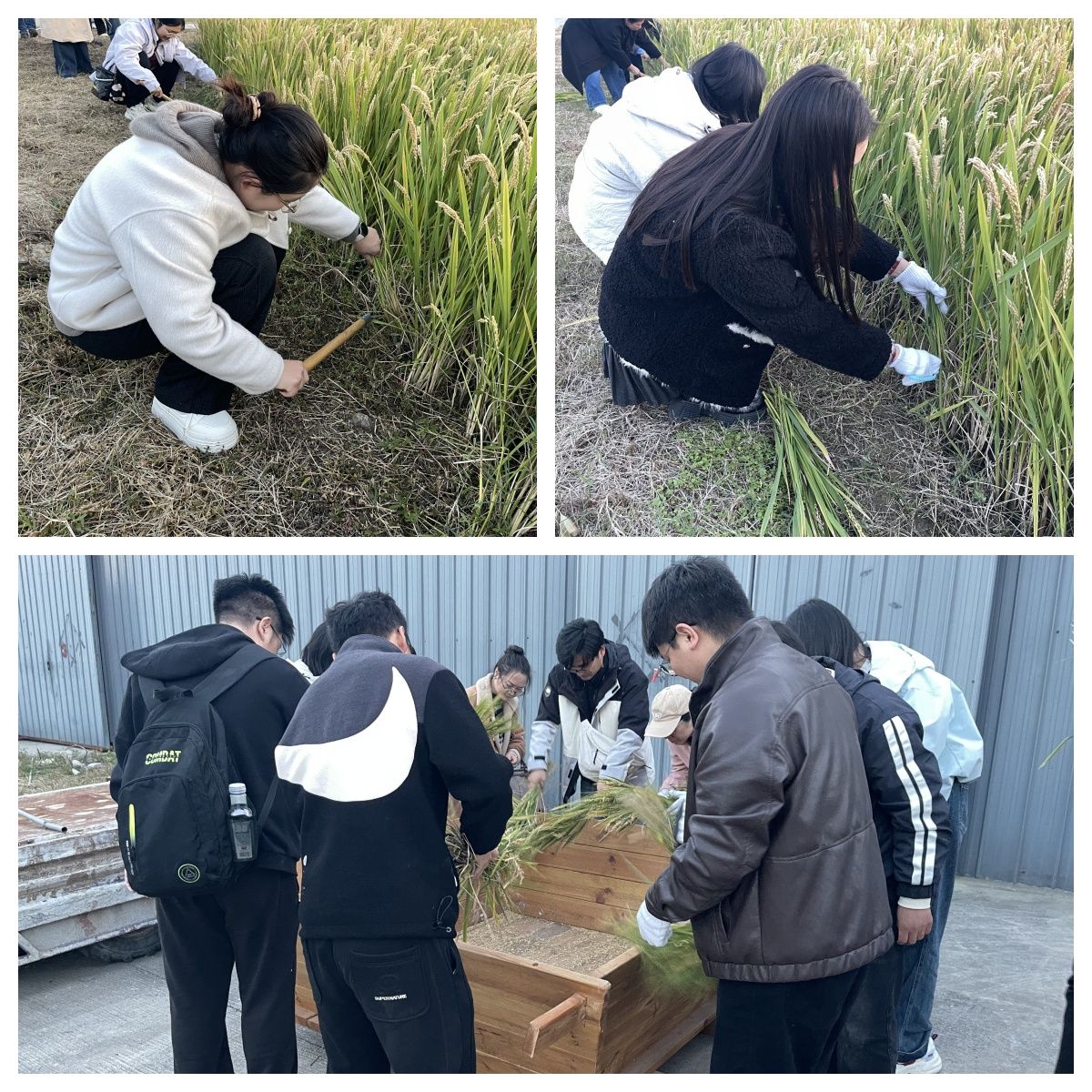 在智慧农业田园综合体实践教育基地,基地负责人为教师们讲授了我国水稻的种植历史和在国家粮食安全中的重要地位、水稻的传统种植及现代化种植技术和农具操作基本要领,并演示了相关操作方法。在农技老师的指导和带领下,通过亲身体验全收割、脱粒、舂米、磨米“四部曲”的过程,老师们切实认识到了“粒粒皆辛苦”的不易和农业技术现代化的重要意义。