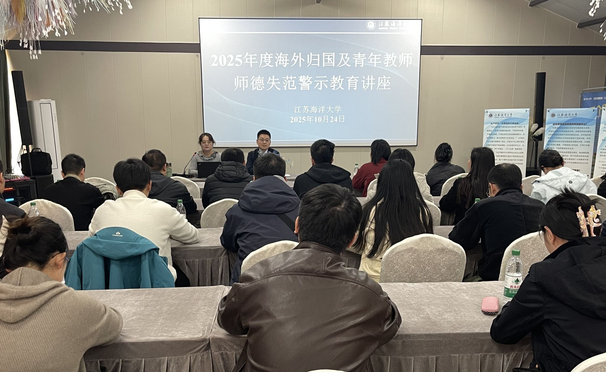 为落实立德树人根本任务,进一步弘扬教育家精神,引领青年教师深入了解国情社情,增强教师依法治教、依法从教意识,严格规范职业行为,10月24日下午,党委教师工作部邀请文法学院教授、省民法学研究会常务理事、连云港市知识产权专家库首批专家薛丽作题为“师德失范无‘特区’——高校教师职业行为规范与风险防控”的师德失范警示教育讲座,讲座由党委教师工作部副部长吴海龙主持。统战部副部长王琰和青年教师参加。